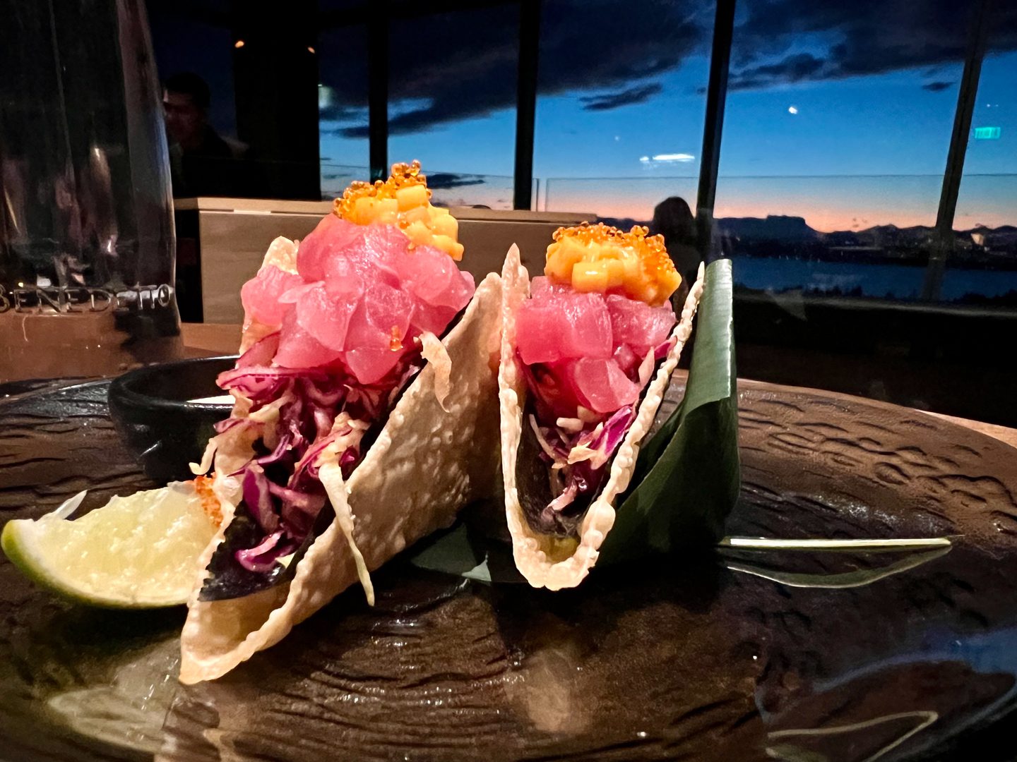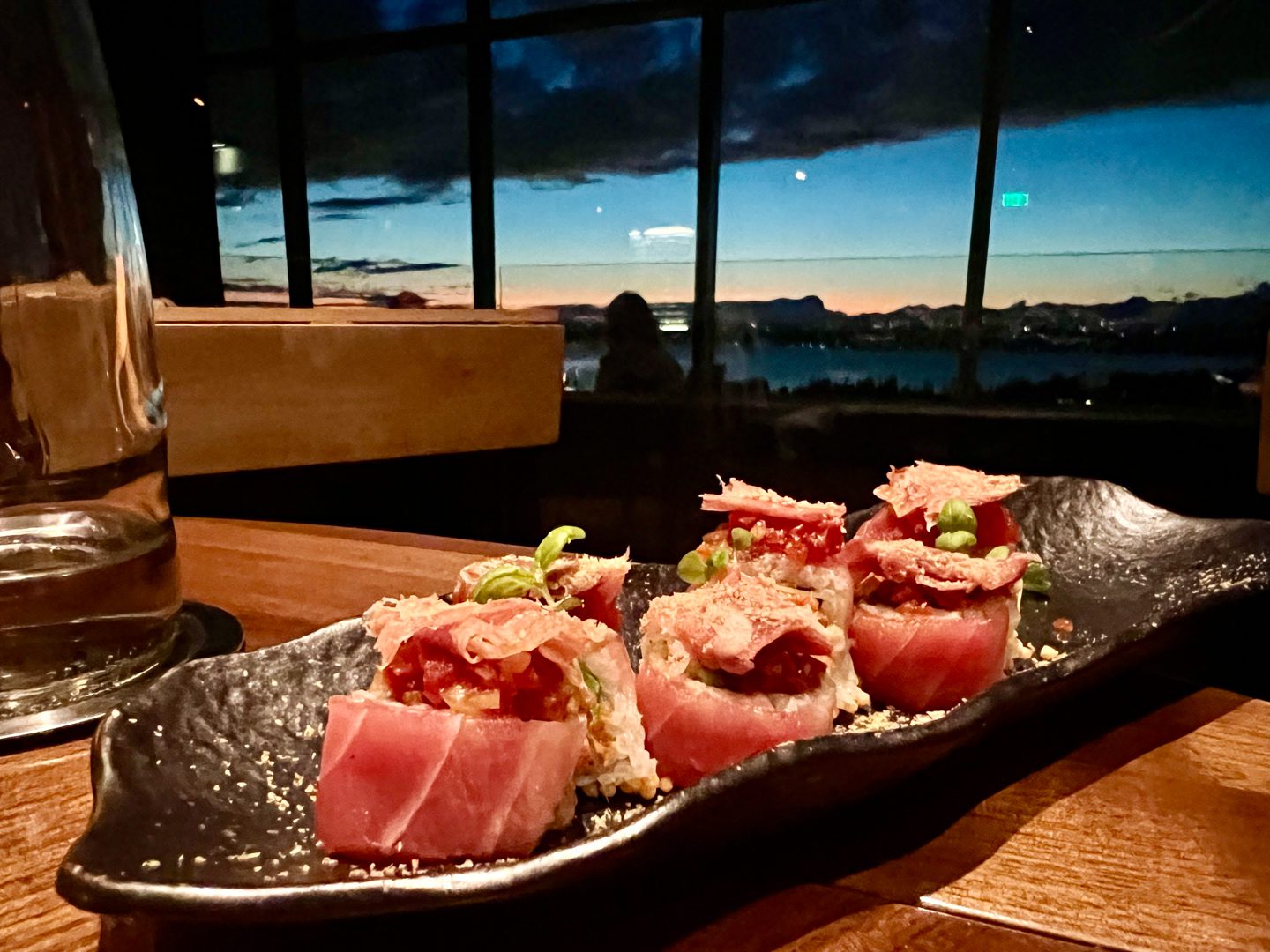 And for something fun and unique, try the sushi tacos filled with fresh tuna or tobiko and topped with a ginger carrot slaw, wafu daikon oroshi, and sweet mango. The Spicy Tuna & Prosciutto Roll is a delicious and unique combination of flavors. The spicy tuna is perfectly balanced with the creamy avocado and the salty bottarga. The tomato relish adds a fresh and tangy note, while the bubu arare provides a crunchy texture. It is definitely a must-try for those who love sushi with a little extra kick. The King Salmon Ceviche Roll is a fresh and light option. The combination of cilantro, onion, asian pear, tomato, and avocado creates a refreshing and well-rounded flavor profile. The ume vinaigrette adds a touch of sourness that pairs well with the mild salmon. Overall, it is a great choice for those who prefer a brighter and more acidic taste.